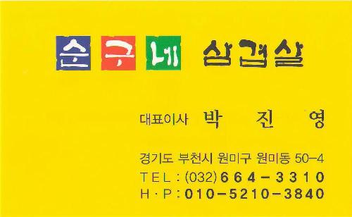 부천시 원미구 원미동 소재, 삼겹살, 돼지갈비, 꽃등심, 갈비살 전문. 일주일에 2, 3번 서울 마장동에서 직접 고기를 가지고 와서 고기 품질은 최고입니다.꽃등심 A급은 국내산 한우 A 플러스 등급만 취급(인증서 확인 가능)합니다.그리고 꽃등심 B급은 국내산 육우로 제공하고 있습니다.순구네 삼겹살 경우 100퍼센트 국내산 삼겹살이며 200g에 정량 제공합니다. (항상 저울로 측정함)그리고 수입산 삼겹살(네덜란드)은 따로 준비하고 있습니다.