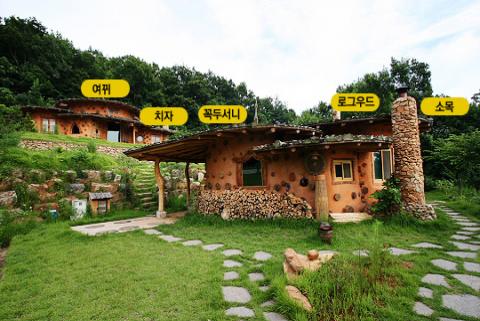 몸에 좋은 황토, 측백나무, 웰빙 통나무펜션.