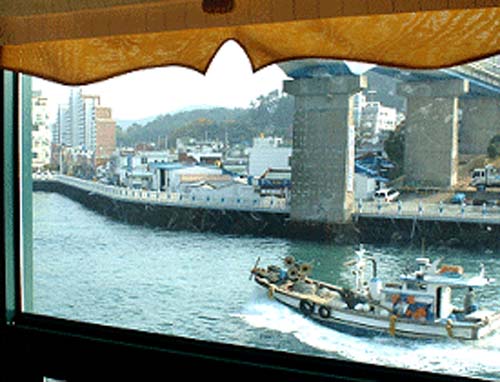 통영대교 아래에 위치하고 있어 경치는 말할 수 없이 좋으며, 경치에 취..
