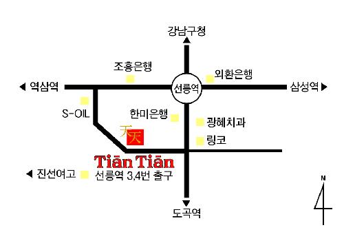 자장면, 탕수육 및 코스요리 등 중화요리 전문점. 하늘 천자 두 개가 모여 매일매일, 한결 같은 이라는 의미의 티엔티엔(Tian Tian). 매일 손님들에게 한결같은 맛과 서비스를 제공 하겠다는 서비스 정신과 자부심이 담겨 있는 티엔티엔의 요리는 기본기에 충실한 정통 중국 음식. 20년 이상의 경력을 인정받은 특급호텔 출신의 주방장이 직접 조리하고, 풍부한 해산물과 신선한 야채, 육류를 주재료로 하여 중국요리의 풍미를 느낄 수 있는 곳이 아닐까 한다. 각종 요리들은 여러 가지 신선한 과일과 야채가 어우러져 맛은 물론 오감을 만족시켜 주며, 다양한 조리 과정으로 담백하고 깔끔한 맛을 자랑한다. 점심 메뉴로는 두 가지 코스와 일품요리가 있고, 저녁에는 각종 술안주용 단품요리와 천화, 천설, 천해, 천성, 천천 등 다섯 가지 코스 메뉴가 준비되어 있다. 또한 관자삼선, 어향닭고기, 프레시 탕수육 등 주방장 특선 메뉴들도 티엔티엔이 자부하는 요리들이다. 모던하면서도 격조 있는 분위기의 인테리어는 여느 호텔 레스토랑이 아닐까 하는 착각이 들며, 인조잔디와 각종화분을 이용하여 자연스러우면서도 세련된 느낌을 주는 인테리어가 인상적이다. 정갈하게 정리된 총 106석의 테이블과 크고 작은 5개의 룸이 준비되어 있어 가족 모임을 비롯한 각종 회식 등 크고 작은 다양한 모임이 가능하다.